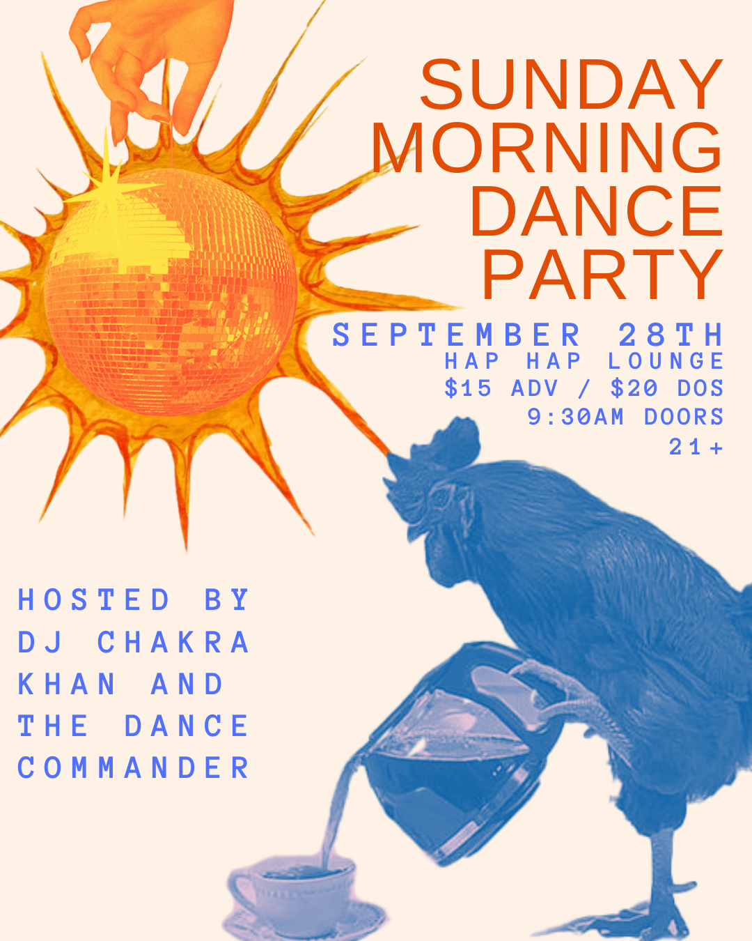 Sunday Morning Dance Party Hosted by DJ Chakra Khan and The Dance Commander Cold brew. Kombucha. Sunshine. And a dance floor calling your name. Grab your friends and start your day in the most joyful way—moving your body, soaking up the summer vibes, and dancing together under the morning sun. Let’s celebrate the sweetness of the season and the magic of community, one beat at a time.