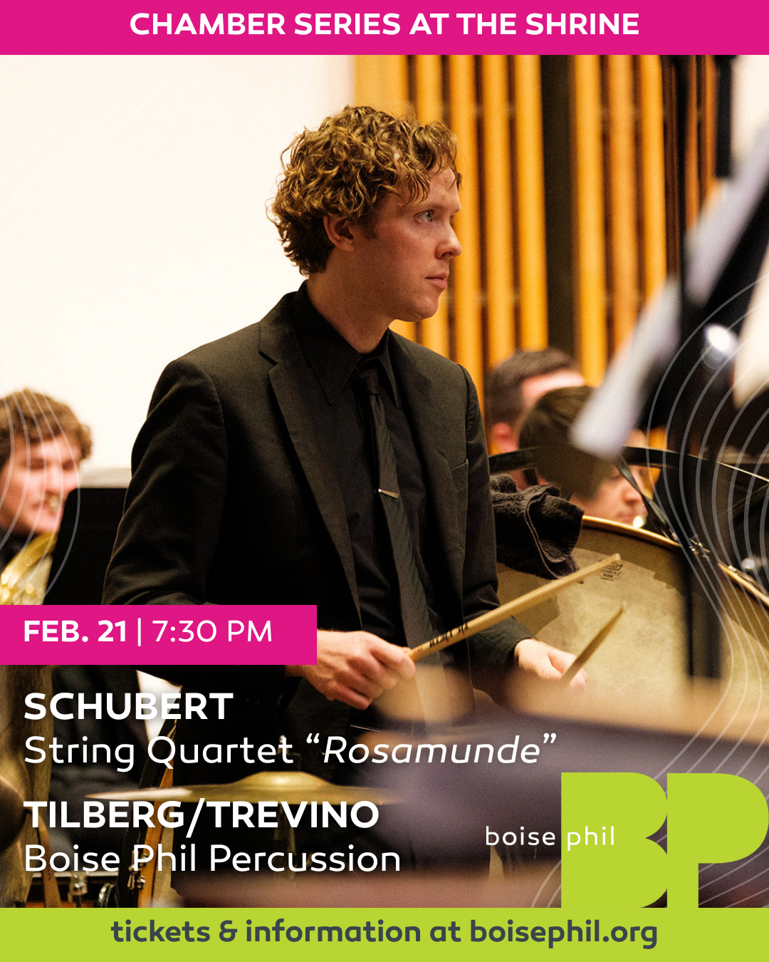 Boise Phil’s Chamber Series returns to Shrine Social Club—Boise’s beloved home for intimate, live performance—for an evening that bridges lyrical beauty and bold rhythm.
