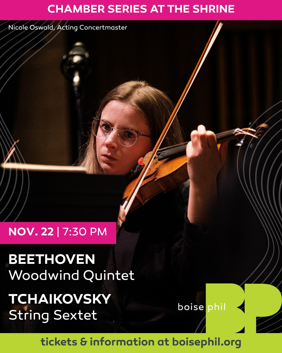 Join us for an evening of fine Chamber Music as Boise Phil musicians bring these masterpieces to life in the intimate glow of Shrine Social Club, where the beauty of live music meets the soul of Boise.