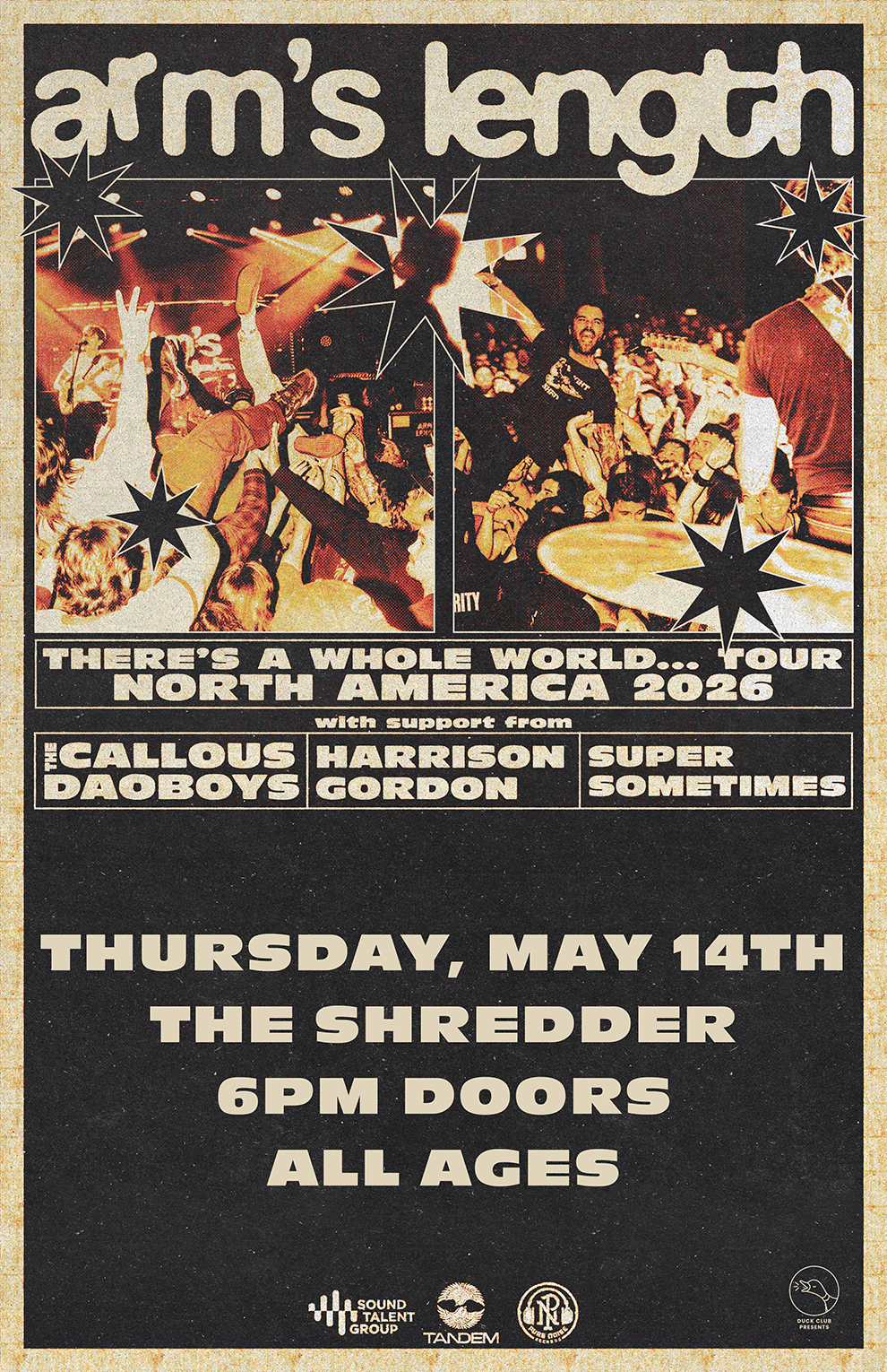 This record speaks more to my life at the moment than the past,” singer/lyricist Allen Steinberg explains, “even though there’s still a good amount of past on it. But it’s how I’m dealing with it now, as opposed to being enveloped in it—there’s more a sense of being on the other side of it, of seeing it with hindsight. ” Produced by Anton DeLost, There’s A Whole World Out There expands Arm’s Length’s horizons, presenting Steinberg as more self-reflective contemplative than he was before. As Steinberg wrote the parts for all the instruments and most of the lyrics and drummer Jeff Whyte added percussion, it was only when these songs were recorded as a full band with Jeremy Whyte on bass and Ben Greenblatt that their full potential was realized. The result is that the feelings driving these songs burst and bloom with full force, building on the incredible foundations set by the band’s previous record. Though most of the album is designed to be played loud, there are also moments of delicate, tender nuance that offer a window into the resilience that got Steinberg through those trying few years, allowing him to now look back on them, if not with a smile, then with a palpable sense of relief. “It’s all about having some hindsight,” he says, “and being able to look back on the traumas that I talked about on the last record. It’s accepting the damage is done, and then moving on.