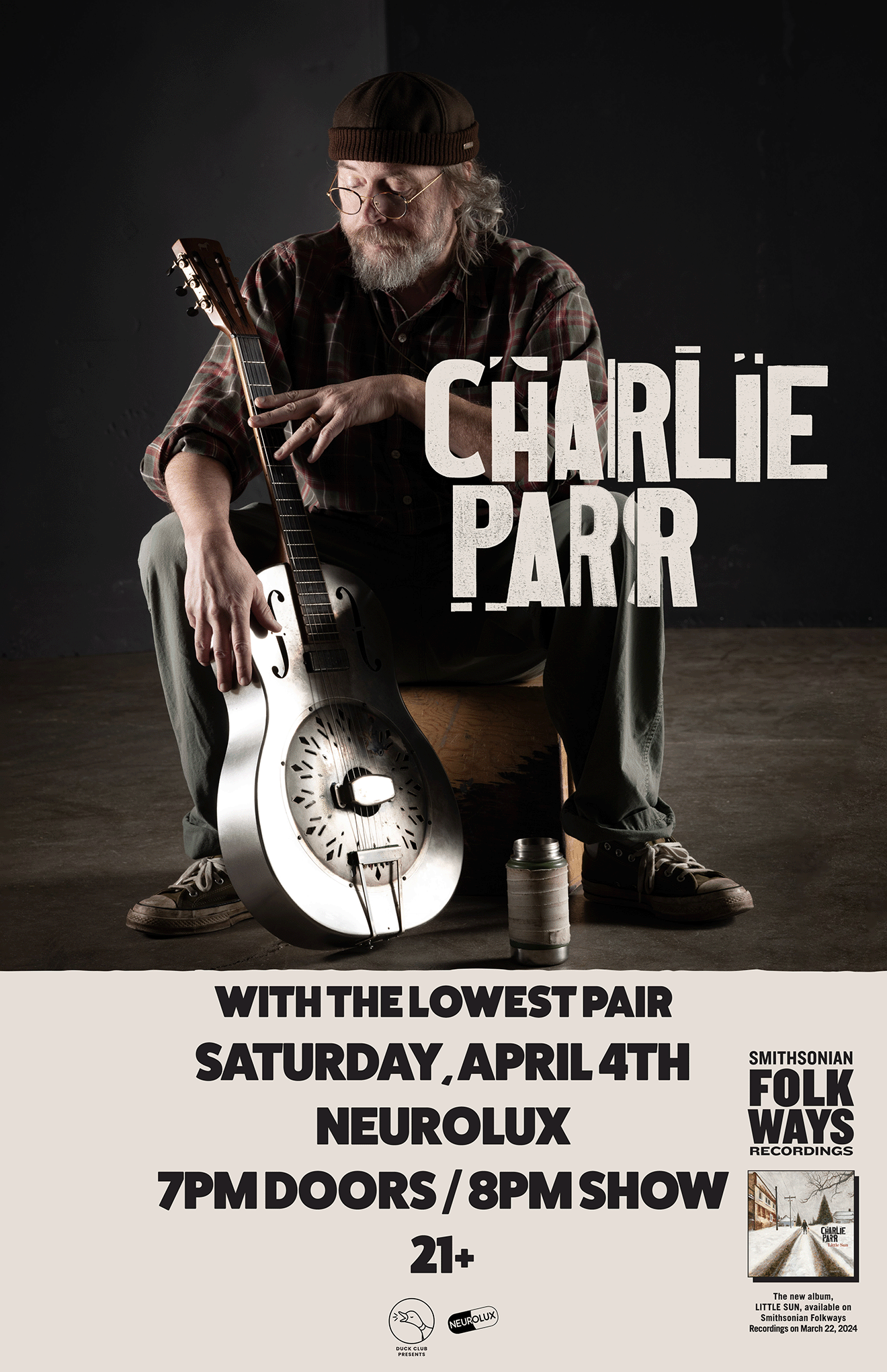 Parr’s first album with Smithsonian Folkways, Last of Better Days Head (2021), foregrounded his lyrical craftsmanship and sophisticated bluesman confidence, with spare production highlighting Parr’s mastery of guitar and elevating his poetry. Last of Better Days Ahead is a portrait of how Parr saw the world in that moment, reflecting on time and memories that have past while holding an enduring desire to be present. In his 2024 release, Little Sun, Parr weaves together stories celebrating music, community, and communing with nature. Putting forth an ambitious and raw album that exemplifies the best of Parr’s sound: a blend of the blues and folk traditions he continues to carry with him and the steadfast originality of a poet.