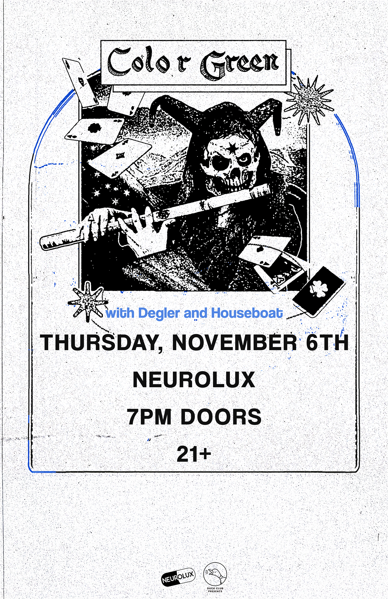 For the California-based quartet Color Green, playing music together is all about stepping into the unknown. “When we play live, I don’t really know what’s going to happen,” says Noah Kohll, one of the band’s two guitarists and four vocalists. “You really have no idea what you’re going to get with this band, which keeps things fresh for us and maybe makes the live experience special.” In a very short time, they have developed a word-of-mouth reputation as a dynamic and unpredictable live act, grounding their cosmic jams in earthy melodies and drawing from ‘60s SoCal folk-r0ck, ‘70s classic rock, ‘80s underground rock, ‘90s psychedelic dance-rock, and any other sound that catches their ears. Adaptable onstage and off, Color Green has shared stages with a range of groups that reflect both the sophistication and the wild malleability of their sound, including Fuzz, Kikagaku Moyo, Circles Around the Sun, Hiss Golden Messenger, and the Brian Jonestown Massacre. Yet, because they see boundless possibilities from one note to the next, they anchor their music in the urgent present rather than the distant past. Color Green can be a million different bands without losing their essential hue. They capture that wild, mercurial quality on Fool’s Parade, a meditation on loss, grief, confusion, frustration, and the clarity to which they all lead. The album has the dynamic of a tight live set, full of ebbs and flows, highs and lows, quiet moments like the devastating “5:08” and reckless jams like the epic “Kick the Bucket.” “Four Leaf Clover” bustles and shimmies like the kaleidoscopic dance rock of the Stone Roses, while closer “Hazel Eyes” recalls the elaborate orchestrations of Brian Wilson and the whimsical melodies of Buddy Holly. “We shaped it to showcase our range,” says guitarist Corey Madden. “All the songs were written together as a band. It’s the four of us in a room, and it features all of our voices. It’s one step toward what this band truly is. We spent a lot of time getting our shit together as a band, and now it’s set in stone for me.” Color Green started out as a very different, much more limited kind of group. “Me and Corey worked together in New York scooping coffee beans for a living and putting them into bags,” says Kohll. “I was living in a basement sublet, and he would come over to write and jam and record.” From those casual sessions came a self-titled EP in 2021, full of spectral jams and offerings up to Jerry Garcia, their spiritual guide. The next year they followed it up with a self-titled full-length via Aquarium Drunkard, with various friends helping to round out the songs. “These things happen in an interesting way,” says Kohll. “There’s been a lot of weird synchronization with this band. It’s all very organic. After we put out our first album, we thought, Oh, this needs to be a live band, too.” After running through a few different rhythm sections, they met drummer Corey Rose and bassist Kyla Perlmutter, who not only are kickass players but opened up all new possibilities within Color Green. “Our first practice together, everyone was like, This is so loud,” says Rose. “That became a really important part of the band, and we try to capture that dynamic when we record.” Perlmutter adds, “We all really value each other’s input. It doesn’t feel like there’s an unfair hierarchy in this band. We respect each other’s tastes and recognize that we’re all very, very much in love with music in our own ways.” After sharpening their attack on the road—playing DIY shows in small towns while opening for some of their heroes—the expanded Color Green began writing songs for what they considered a debut album. “One of us will come in with a riff or an idea, and the others will take it up and let it morph into something completely different,” says Perlmutter. “What we come up with together, I don’t think any of us could do by ourselves. The music we make is always surprising me.” The album’s title track, with its snaking guitar lines and parallax instrumental interplay, started out as an eastern jam when Rose came in with a very loose idea: “I wanted to write something in 6/8 time,” she says. “It was super awkward at first, but 40 minutes later, it sounded like Fairport Convention. It took everybody to get there.” Says Madden, “I like when stuff happens and it opens up the door to something else in my brain. We might spend a lot of time working on something and get nothing out of it, but then in the back of my head I’m thinking, if you take this and add it to that… Sometimes it takes hours to figure out two seconds of a song, but it’s always worth it.” The aching heart of Fool’s Parade is “5:08,” a moving expression of grief—not moving through it, necessarily, but simply living with it, moment to moment. “What’s it like, on the other side?” they all sing together, as though consoling one another. “Oh, the longing for the space to peer thru.” Inspired by the death of Madden’s father, it is rooted in a Spiritualized show. “I was going through some gnarly personal stuff,” says Madden, “and it was all hitting me at once, all these emotions. I talked my way through some crazy shit, and by the end of the show I had ‘508’ hashed out in my brain. It’s about losing people very close to you and wanting to communicate with them and not really knowing how.”“It’s the quietest song on the record,” says Rose, “but it’s also the heaviest. We all cried while recording it. Everybody’s singing on it, and everybody’s crying on it. Sometimes we’re like, Let’s not play that song tonight. It all depends on how we’re feeling.”