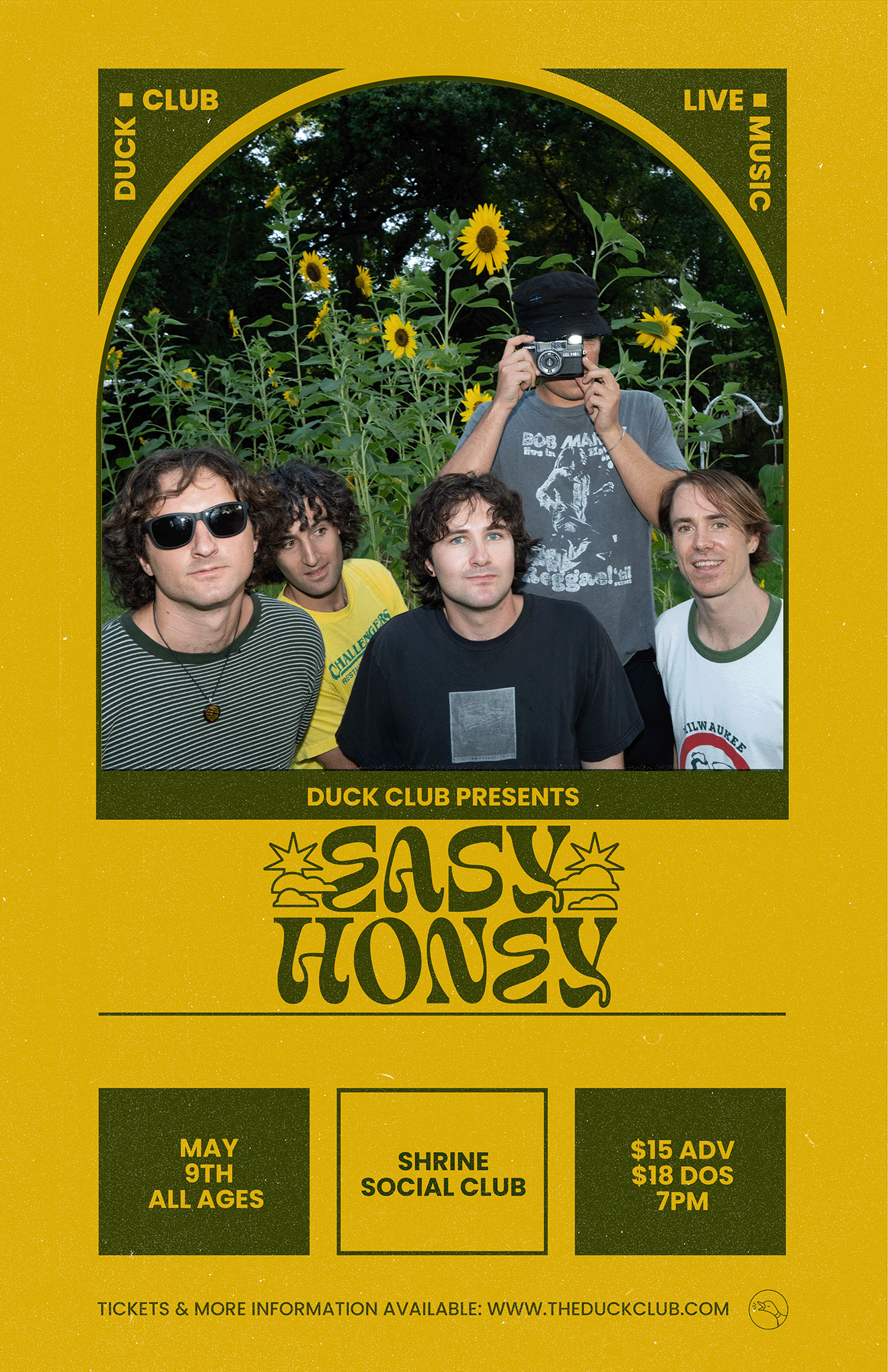 Easy Honey sounds like the starry nights, sunny graveyards, and small-town college Dairy Queens of the South, where the band took form. The group’s songs have quickly become anthems of nostalgia for their indie rock audience of daydreamers and nightseekers. Easy Honey released their album, Cupidity Unlimited, with contributors such as Adam Lochemes (Arlie, Zach Bryan), Jon Gilbert (Mt. Joy, Adam Melchor, Arcy Drive and Charlie Stavish (Phoebe Bridgers, Jenny Lewis). The band’s raucous yet sentimental live show delivers the realness that people crave in a post covid/internet driven world.