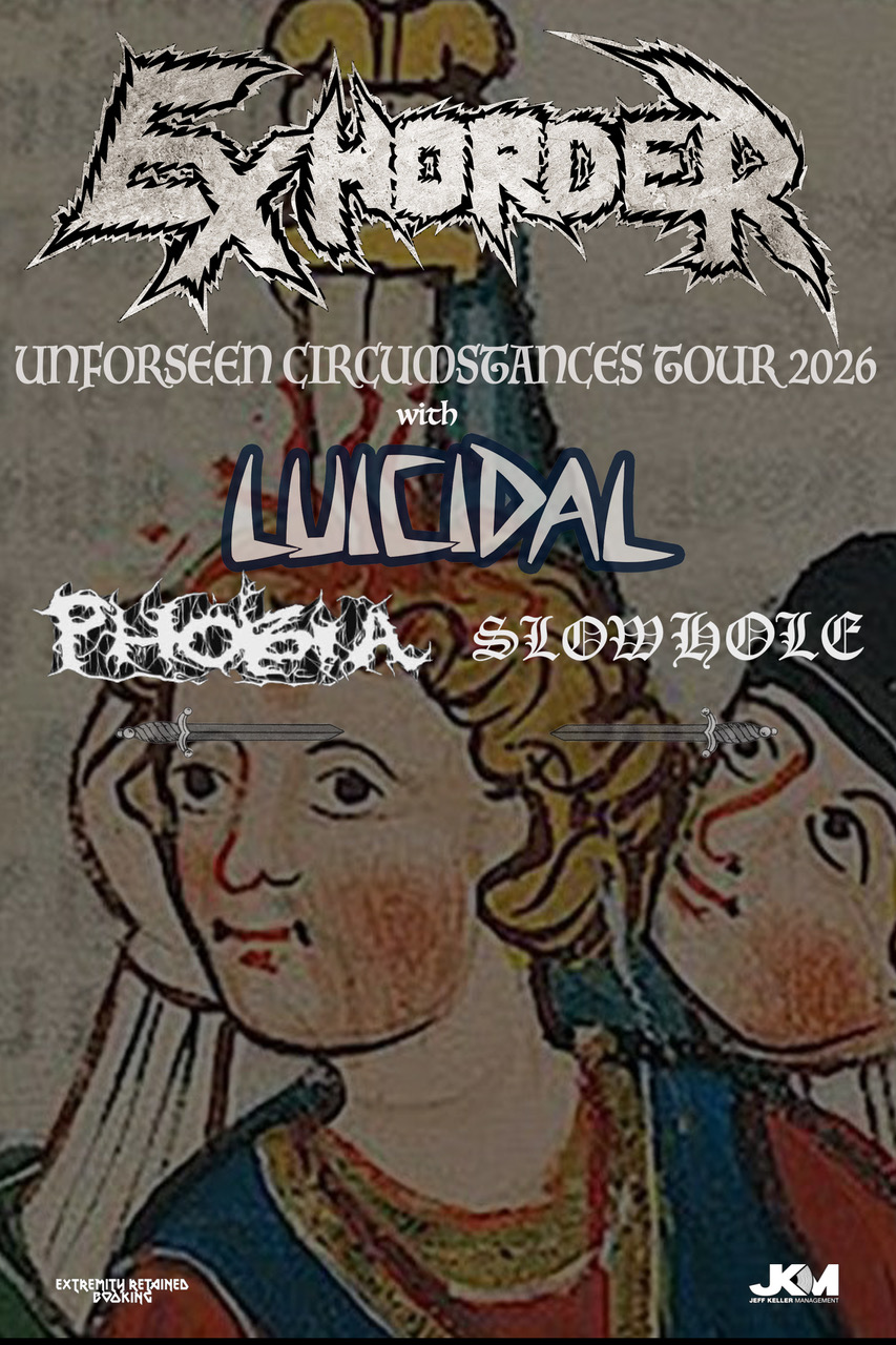 Exhorder is an influential thrash-and-groove metal band led by vocalist Kyle Thomas. Amid a tumultuous history, the band’s sonic trademark — chugging, tightly constucted, syncopated guitar riffs framing detailed yet rigid compositional structures — offered a blueprint for underground metal’s “Louisiana sound” in the 1980s and they have turned it into a brand in the 21st century.