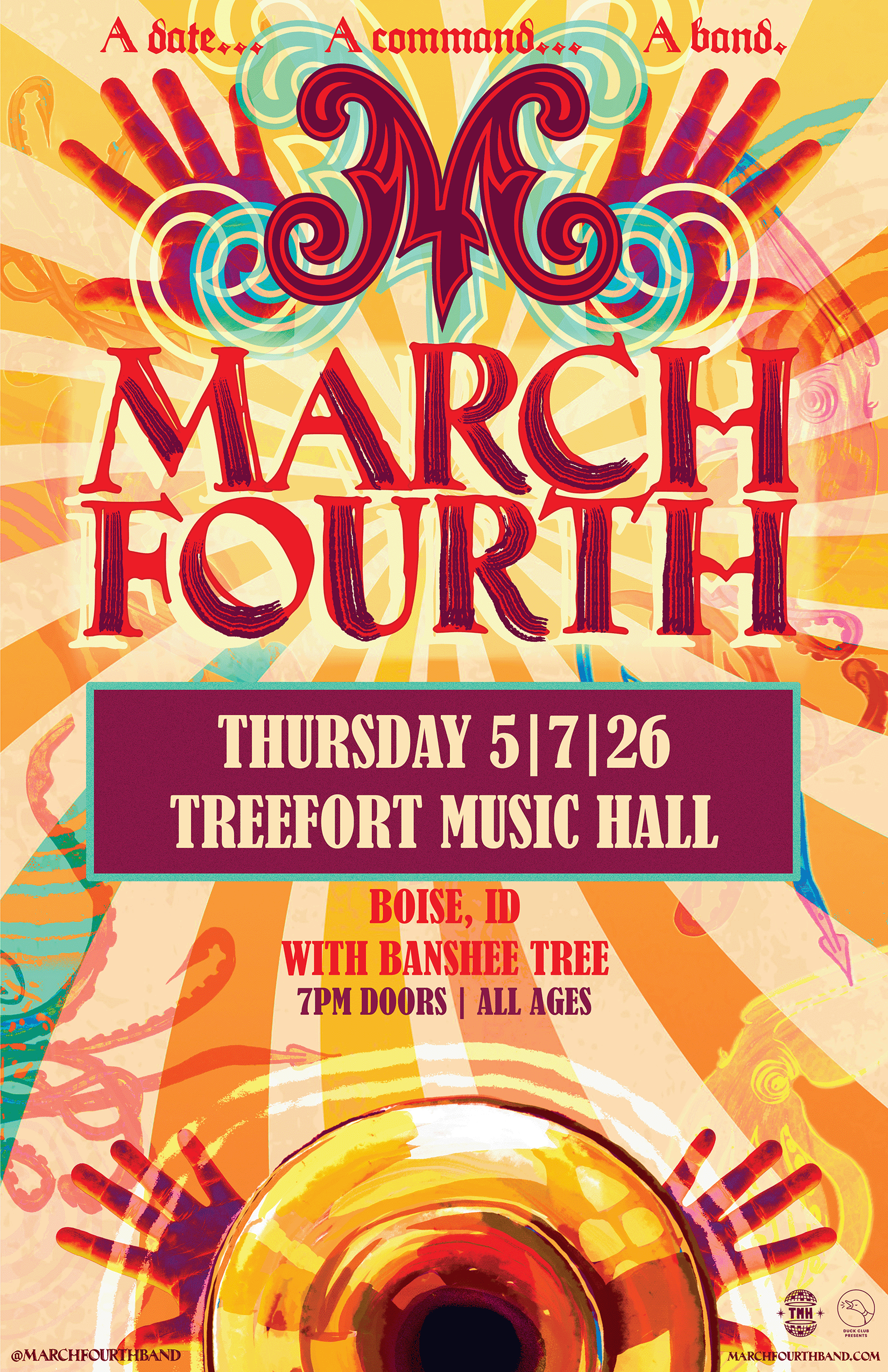 MarchFourth travels in one big tour bus, bringing their unique brand of party wherever they go. Their show is a sonic journey with worldwide influences, echoing the deepest grooves of American funk, rock, and jazz then boiling it all together in cinematic fashion, with showmanship, flare, and most of all: heart. This genre-busting, joy-inducing, in-your-face experience is not to be missed!