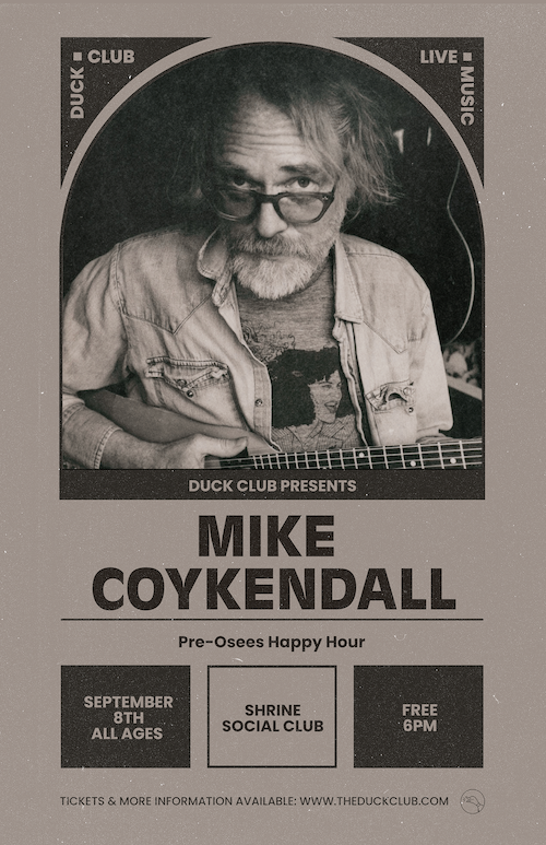 Mike Coykendall is a veteran songwriter, producer, and multi-instrumentalist with a career spanning over four decades. He fronted Klyde Konnor in the ’80s and Old Joe Clarks in the ’90s before moving to Portland in 1999, where he built his Blue Rooms home studio. Known for his work with artists like M. Ward, She & Him, and Bright Eyes, he also developed a unique solo performance style using a custom setup he calls “the rig.” He’s released several solo albums—including Chasing Away the Dots (2012), Half Past, Present Pending (2015), and The Dirt and the Dust (2021)—and continues to be active in the Portland music scene as a performer, producer, and engineer.