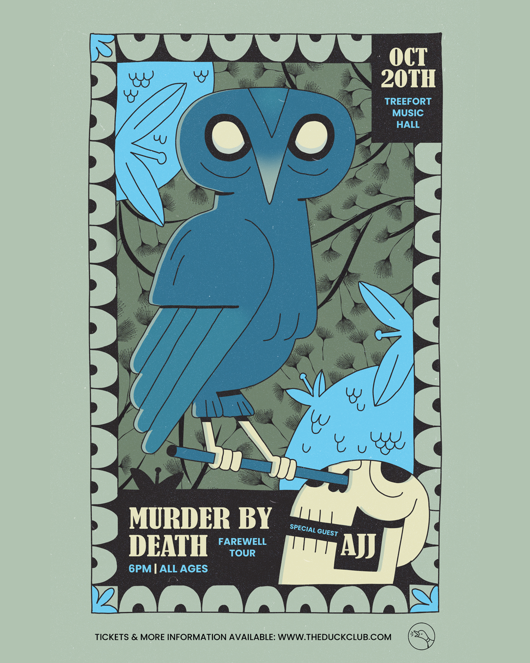 Murder By Death’s path began in the early 2000s as most Midwestern college-town groups do, by playing to small crowds at ratty venues and frenzied house parties. While many of their formative-year scene-mates failed to make it much further than campustown’s borders, Murder By Death translated their anonymous beginnings into a 20+ year career founded on a bedrock of eight full-length albums, tireless D.I.Y. touring and performing ethics, and, most importantly, a dedicated, cult-like fanbase.