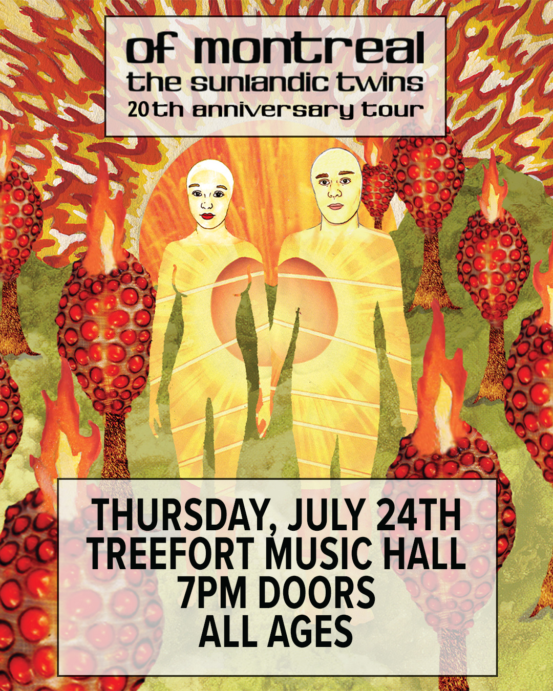 On of Montreal’s seminal album The Sunlandic Twins, songwriter and multi-instrumentalist Kevin Barnes followed up their 2004 Polyvinyl debut, Satanic Panic in the Attic, with what became the band’s most commercially successful album to date. Originally released in April 2005, The Sunlandic Twins marked a signicant turning point for of Montreal, showcasing Barnes’ evolving songwriting and a shift towards a more electronic and dance-oriented sound. The album’s vibrant blend of synth-pop and psych rock helped cement its status as a fan favorite and a dening moment in the band’s career. Iconic tracks like “Wraith Pinned to the Mist and Other Games” and “The Party’s Crashing Us” became some of the most beloved songs in the band’s extensive catalog. The Sunlandic Twins set Kevin Barnes on a path to becoming one of the most inuential songwriters in independent pop music. The album’s success paved the way for more critically acclaimed releases, numerous late-night TV appearances—including The Late Show with David Letterman and Late Night with Jimmy Fallon—and brilliant collaborations with artists such as Solange, Janelle Monáe, and Jon Brion. of Montreal went on to perform across the globe, gracing festival stages at Coachella, Sasquatch!, Pitchfork Music Festival, and beyond, while also amassing hundreds of millions of streams worldwide.
