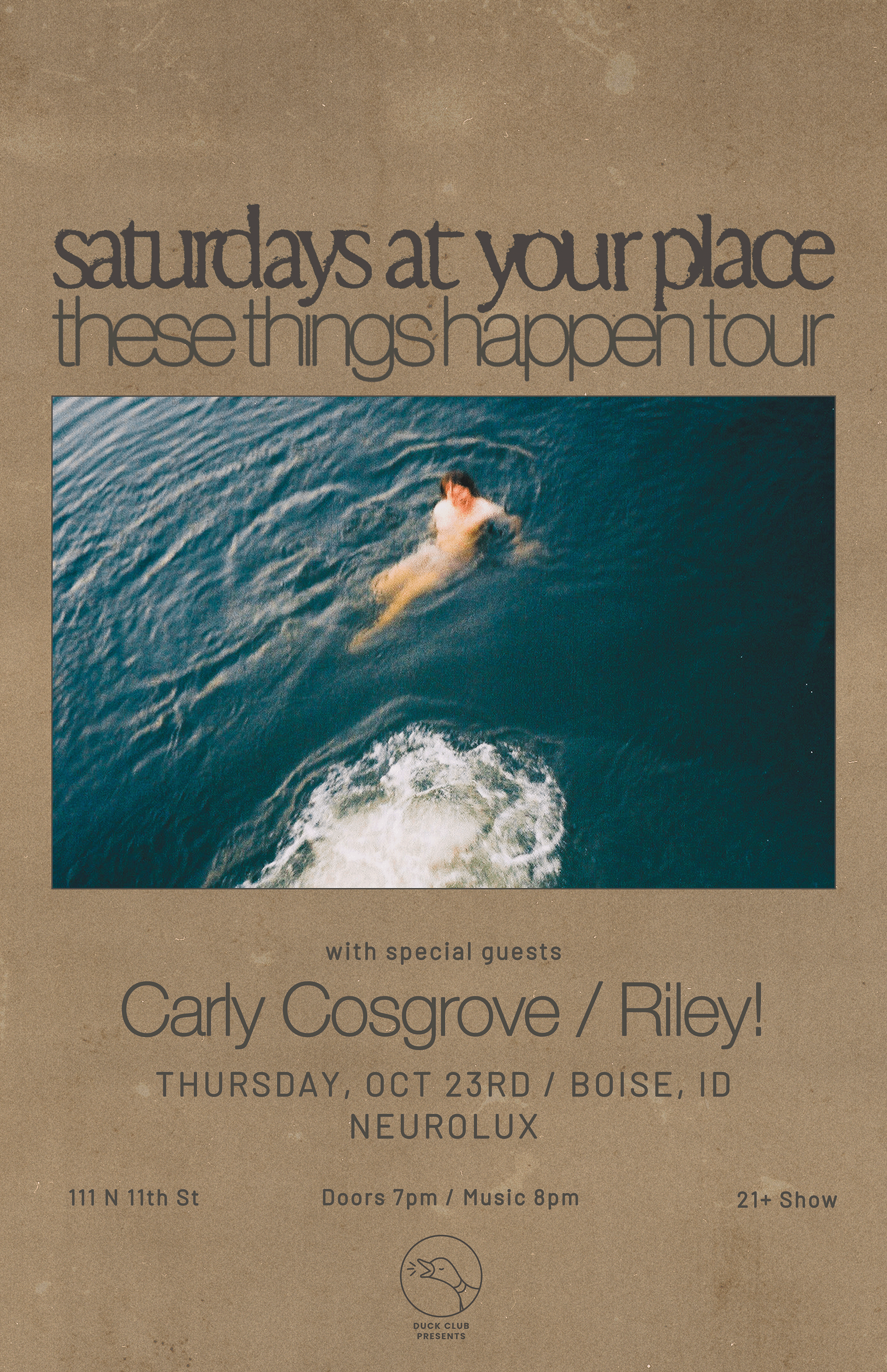 The hype for saturdays at your place first kicked off with their 2023 EP, always cloudy, and has since blossomed into a steadily-building wave of momentum. “tarot cards” instantly had fans on the hook with its undeniable melody and quirky pronunciation, but the entire record has since gone on to cement their place as one of the most exciting modern emo bands around. And while always cloudy was a strong introduction, these things happen marks a decidedly more introspective future for saturdays at your place; it’s also the first music they’ve released since 2023.