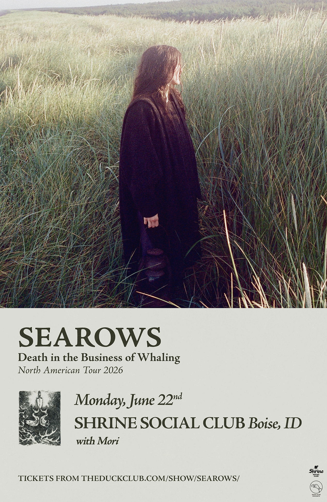 Searows, the project of Pacific Northwest singer-songwriter and guitarist Alec Duckart, releases his new album, Death in the Business of Whaling, on January 23, 2026 via Last Recordings On Earth.Though Death in the Business of Whaling arrives as Searows’ second album, it’s the product of many firsts, including his first time recording outside the creative cocoon of his bedroom. His 2022 debut Guard Dog was written, recorded and self-produced in Duckart’s Portland home and independently released with little expectation as to how it would be received. The music soon found a passionate audience that were already sharing snippets of Duckart’s music via communities on TikTok, as well as co-signs from artists like Ethel Cain, Gracie Abrams and Robin Pecknold.