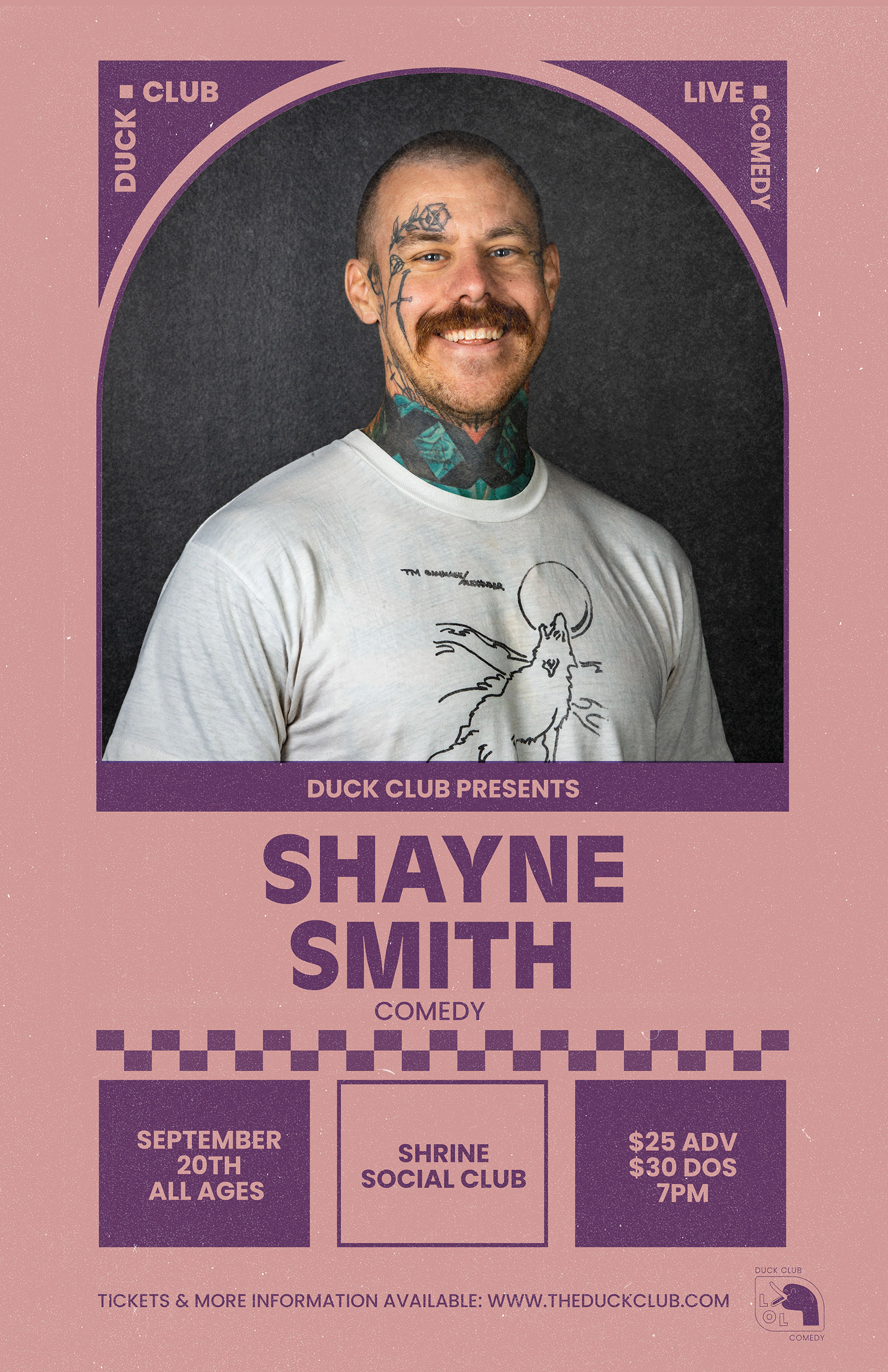Shayne Smith is a Utah-born comedian, writer, podcaster, and musician whose raw, story-driven comedy has earned him a devoted following. After launching his stand-up career in 2014, he quickly amassed accolades including runner-up in Wiseguys’ 2015 “Funniest Person in Utah” contest and Best Alternative Comedian of 2016 by City Weekly. He went on to release a string of acclaimed specials: Prison for Wizards (2018), Alligator Boys (2019), The Animal (2021), Banned from Karate (2023), and most recently Ghosts Are Real (January 2025). Alongside his specials, Shayne contributes to One Blade Magazine and fronts the band Painted Devils all while touring sold-out venues nationwide.