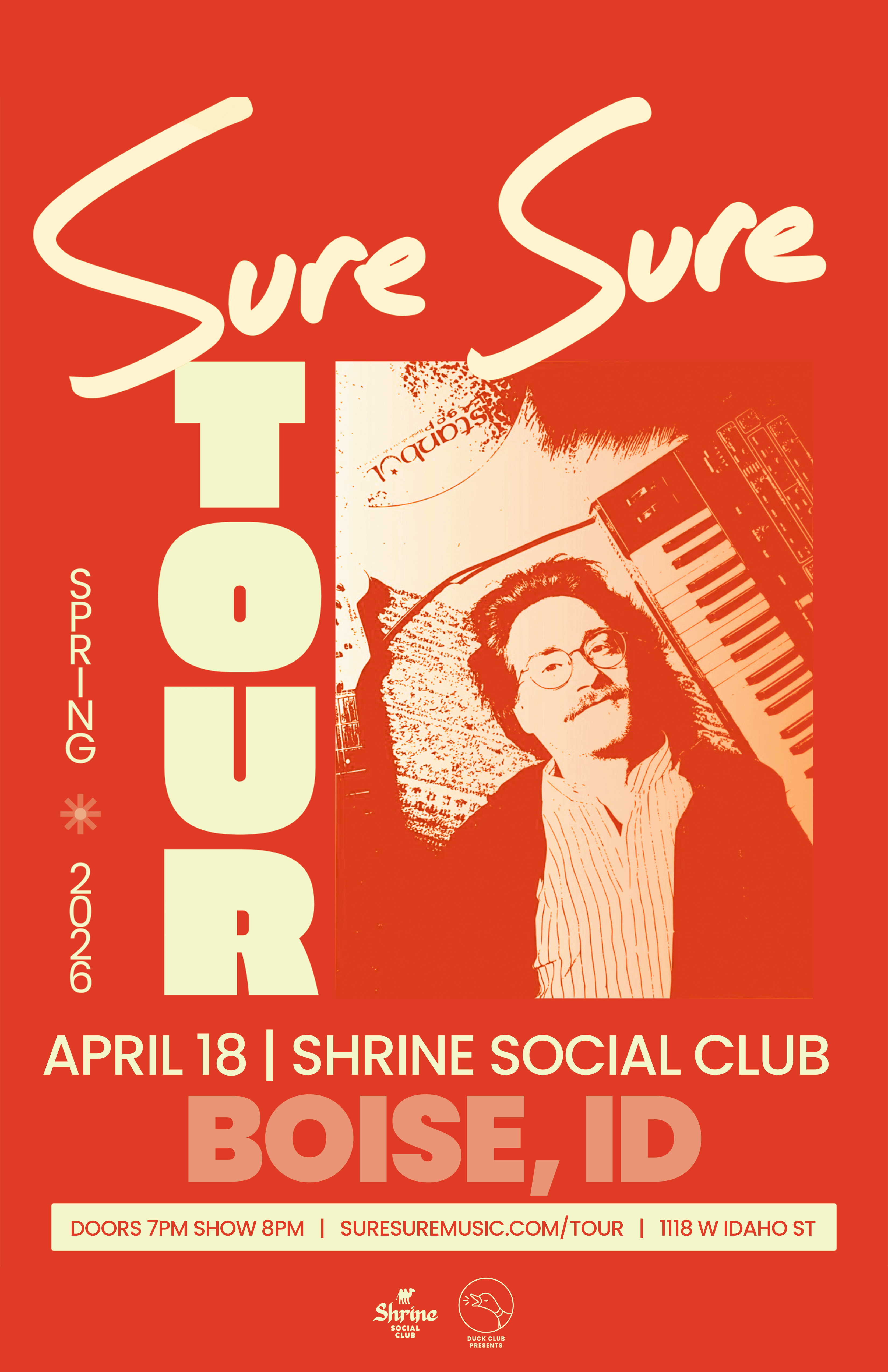 Sure Sure is an indie band and home recording project that has broadcast their bespoke brand of pop music from the east side of Los Angeles since 2014. Led by singer/songwriter Chris Beachy, Sure Sure has amassed over 200M streams and garnered praise for their songwriting and production skills. The band has played multiple headline tours of North America, as well as shared the stage with artists such as Young The Giant, Hippo Campus, Mk.Gee, and Bon Iver.