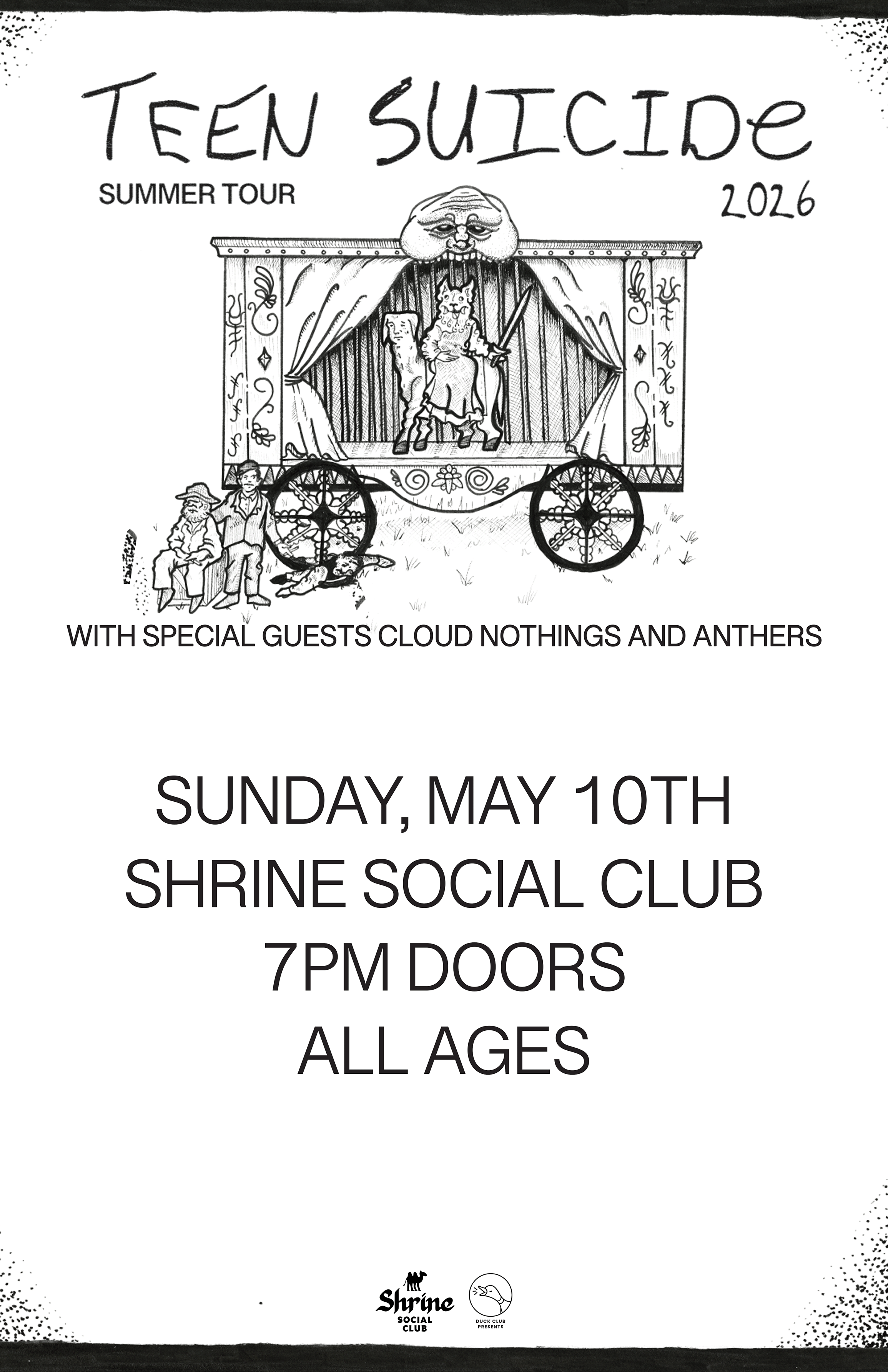 Teen suicide is an experimental sludge metal but also indie pop and whatever else band from orlando florida that’s existed for a while but is lately doing a lot more cool new stuff and getting ready to put out cool new music some of it is lofi some of it isn’t some of it is catchy some of it is heavy most of it is both and some of it is neither and it’s all coming out on run for cover records the band’s core is sam and kitty ray a married couple also in the pom-poms together and the solo projects kitty ray / ricky eat acid check them all out okay and come see the band live