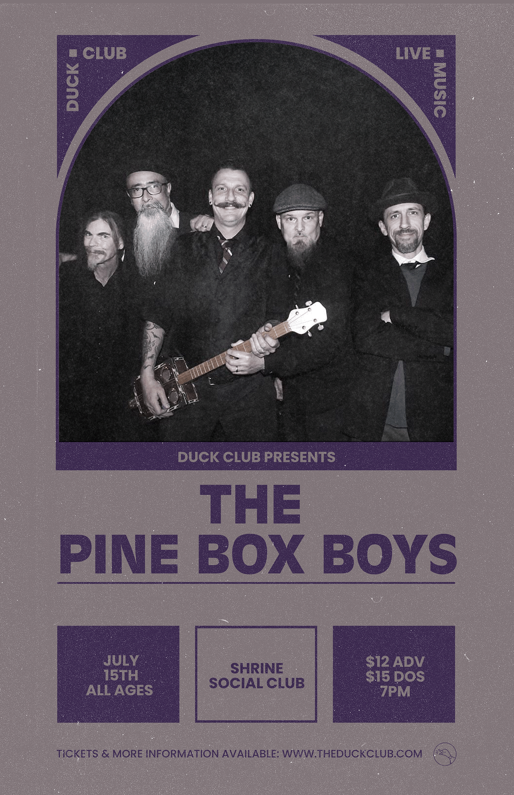 The Pine Box Boys are familiar to most as darkgrass darlings, offering songs in the tradition of the murder ballad. The Pine Box Boys released their fifth album, The Feast of Three Arms, last year. The other iterations of the band may be less familiar to audiences. Lonesome Lester T. Raww and His Acquaintances is the name Lester uses for his smaller local gigs in San Francisco, focusing on Tin Pan Alley favorites, as well as some original material. In this format, Lester performs solo or invites a variety of other local musicians to join him as one of his “acquaintances.” Lonesome Lester released an album in 2014, Anarkansas. Lester T. Raww’s Graveside Quartet grew out of numerous requests to record a children’s album. Lester feels as though their album Lester T. Raww’s Graveside Quartet SINGS YOUR CHILDREN TO SLEEP does not accomplish what it was intended to do. This is due to the fact that the album is more likely to produce nightmares in children than warm, fuzzy, Raffi-esque feelings. This is, however, the band that Lester is focusing on the most recently; they will begin recording their second album this fall. Gentleman Jimmy and His Swindling Dwindlers is the latest project. The Boys put this band together to accompany trumpeter Jimmy Hadley as he performs newer material or songs from his previous band, Col. Jimmy and The Blackfish.