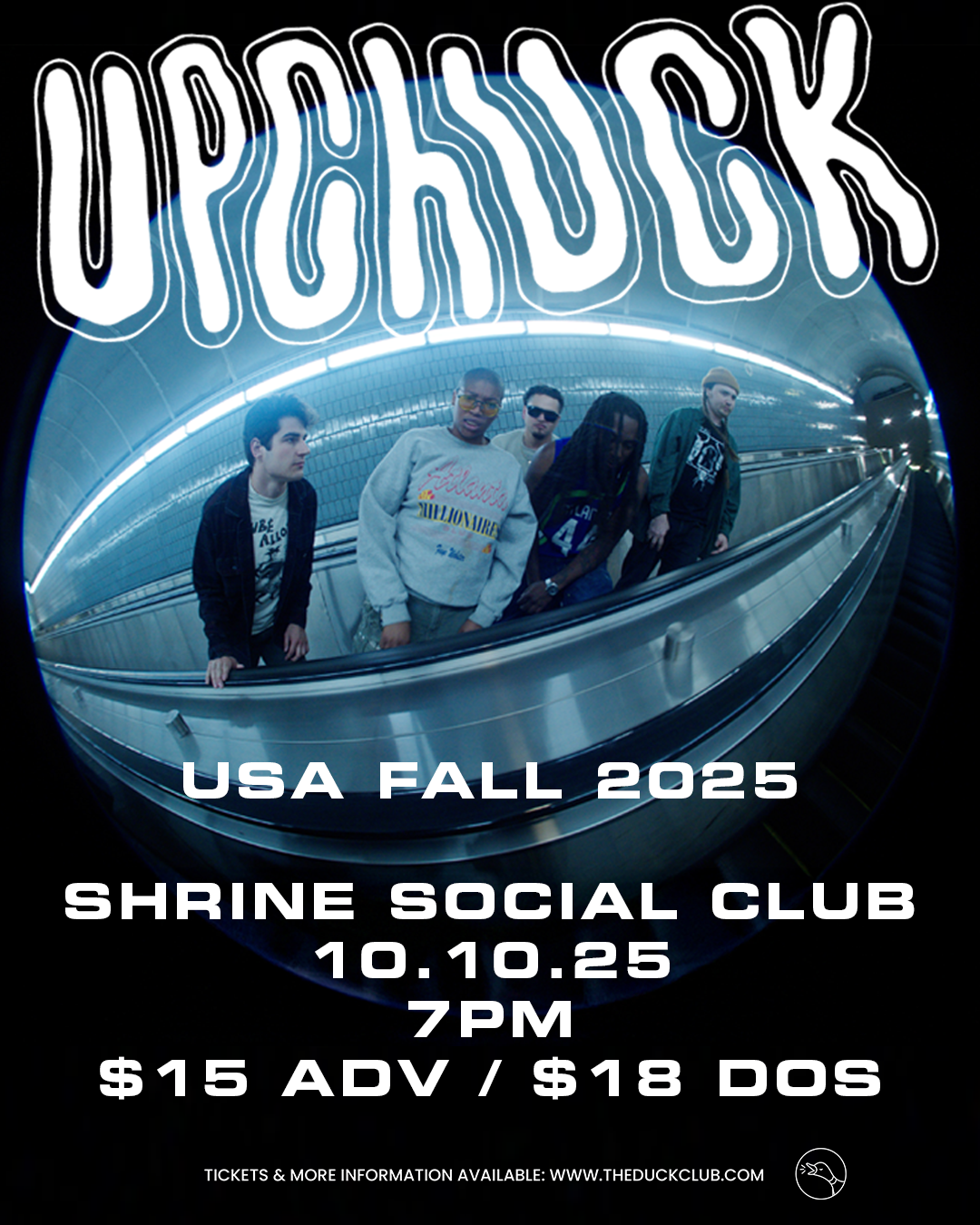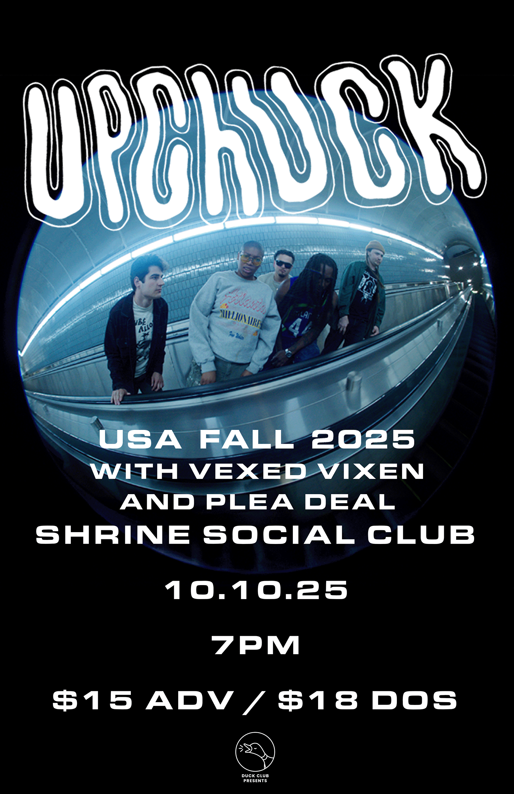 Formed in 2018 through shared connections in Atlanta’s teeming skate scene, Upchuck’s musical aspirations have always been uncomplicated. They play for each other, and for anyone who is willing to move alongside them—there are no trappings of genre worship or social politicking in their sound, only an open spirit of friendly connection. As guitarist Hoff recollects, “When we started the band, all we wanted was to be louder and have more fun than everyone else—we wanted to have as many amps as possible onstage, and we wanted to play with our favorite bands, that’s it.” 2022 saw the release of their first LP, Sense Yourself (Famous Class), which sports a cover photo of vocalist KT gripping a rusted mic as blood gushes down her body from a gash to her forehead, perfectly encapsulating the debut record’s ferocious sense of abandon. Shortly after the release of Sense Yourself, Upchuck absconded to Souther California to record Bite the Hand That Feeds, enlisting the production talents of Ty Segall and the airy reprieve of his secluded Topanga Canyon home studio. Upchuck credits Segall, who recorded the entire record live to tape over the span of five days, with helping to elevate the arrangements of their second record to bold new heights—fans of Segall’s extensive catalog will undoubtedly recognize the shadow of his creative touch in Bite the Hand That Feeds’ commanding, layered drum polyrhythms, tasteful use of oddball effects, and fuzzed out, every-guitar-pushed-into-the-red ethos.