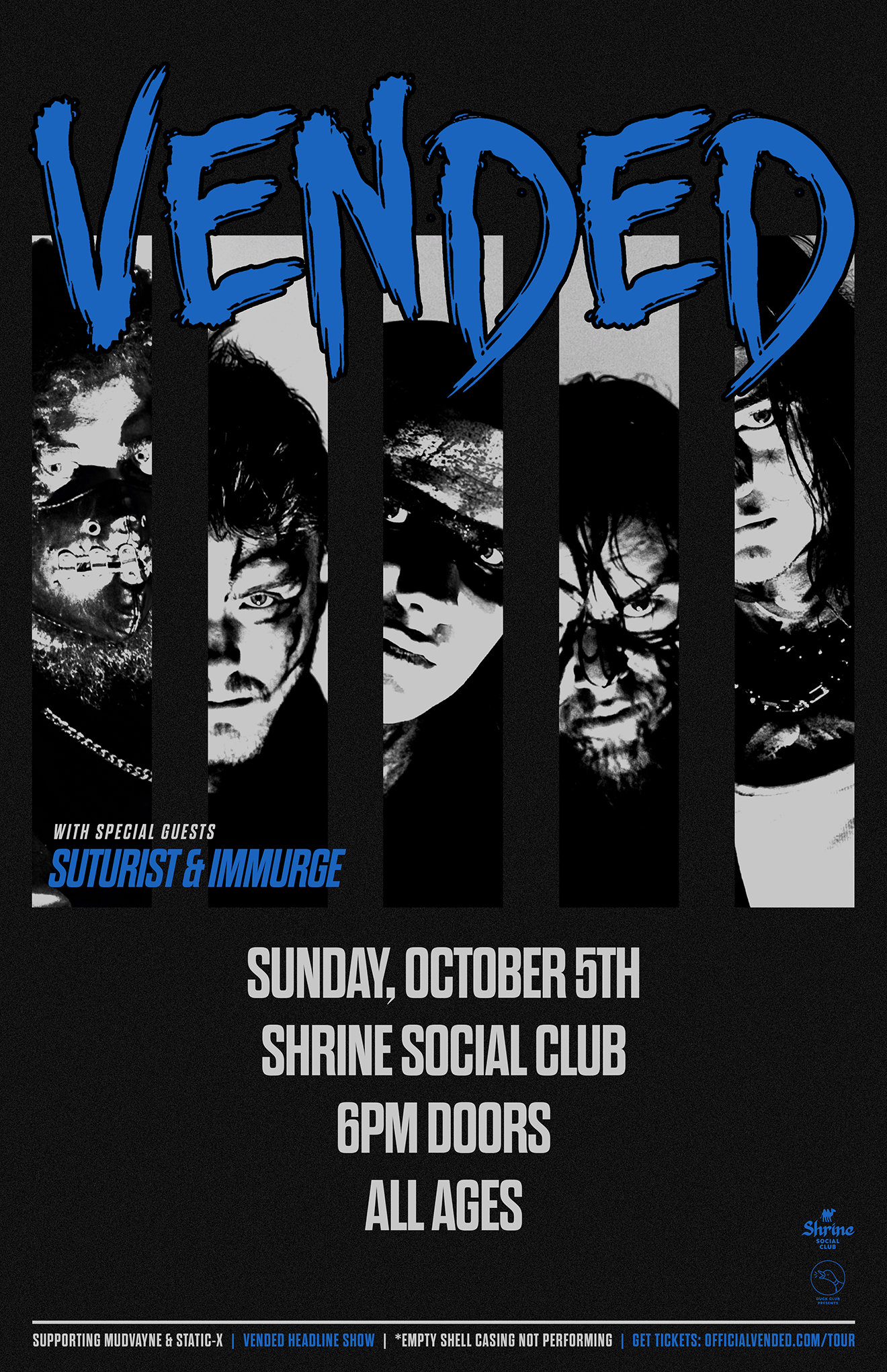 Vended pushes the limits of combustible energy and raw aggression in every song and performance. The core element at the band’s heart – in the music, message, and theatricality – is authenticity. Vended unleashes a bold, honest, passionate take on heavy music and stands determined to raise the flag for a new generation. Their goal is nothing less than world domination. No compromises.