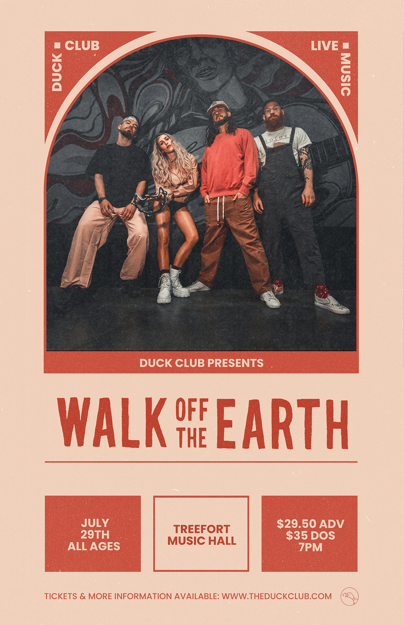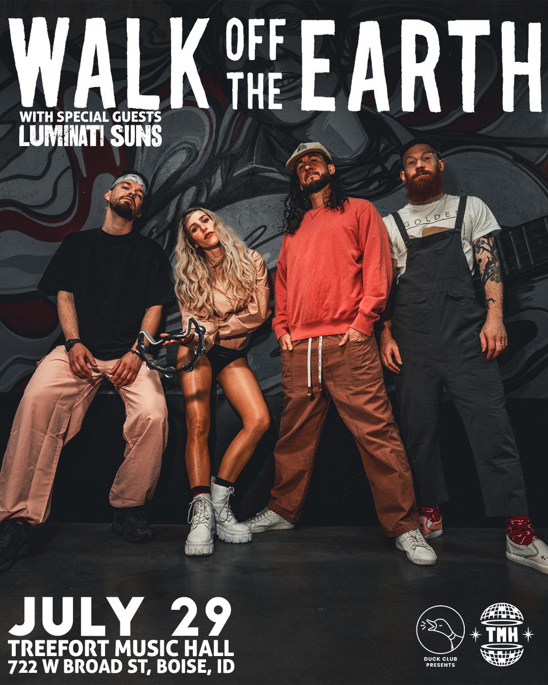 Walk off the Earth is a JUNO Award-winning multi-platinum musical phenomenon. In the past few years alone, they have headlined Red Rocks Amphitheater and Wembley Arena, sold out the historic Sydney Opera House, notched a top-10 single in Canada for 30 straight weeks and made it all the way to the top of the Pop Albums chart in the US. They’ve collaborated with artists from all genres including Snoop Dogg, Sarah Silverman, Keith Urban, Steve Aoki, Lukas Graham, Lauv, Lindsey Stirling, and many more; sold millions of copies of their recordings and racked up billions of streams along the way. Since the group’s inception, WOTE has continued to push the boundaries of what an artist can do. Their YouTube covers have won them Streamy Awards – the highest accolade in the online space – their renditions of the national anthem have been performed at major sporting events such as the NBA Finals, and their original songs have earned numerous high-profile accolades (“Red Hands” achieved #1 at AAA radio while “Rule The World,” “Fire In My Soul” and “I’ll Be There” have all been certified multi-platinum). The band kicked off 2023 with their viral single, “My Stupid Heart” which marks their most successful single to date – garnering 1 million weekly streams, 1 billion YouTube views, 200 million TikTok views and counting, performances on Jimmy Kimmel Live! and Live with Kelly & Mark, and a remix version featuring Lauv. The chemistry between band members Gianni, Sarah, and Joel is infectious and undeniable as Joel’s driving and prolific percussion work and Gianni and Sarah’s remarkable vocal talents continue to exhilarate fans across the globe. Their independent spirit, unstoppable work ethic, and awe-inspiring creativity have consistently catapulted Walk off the Earth to new heights and the future looks brighter than ever.