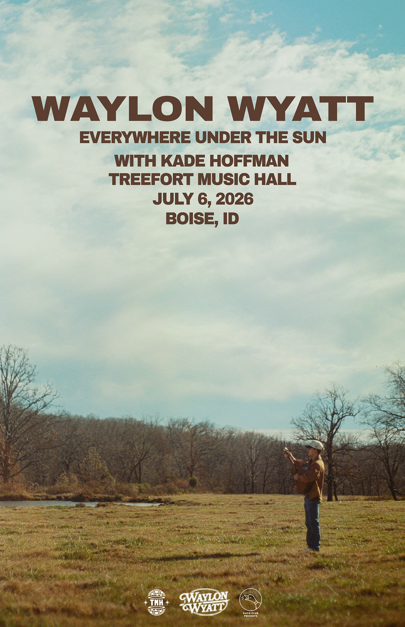 Waylon Wyatt is a 19-year-old folk-country artist from Hackett, Arkansas, known for his raw, red-dirt take on Americana. He began writing songs as a kid, often after long days working construction with his father. Waylon recorded and produced his debut EP Til The Sun Goes Down in the rec room of his childhood home. The EP has amassed over 225 million streams and two of its standout tracks “Arkansas Diamond” and “Jailbreak” have earned RIAA Gold certifications. Drawing inspiration from modern trailblazers like Tyler Childers and Zach Bryan, Waylon has cemented his place as a “rising country star to know” (GRAMMY.com) and was named one of VEVO’s 2026 DSCVR Artists to Watch. He has played sold-out stages worldwide, headlining major U.S. venues and delivering standout performances at Stagecoach, Cavendish Beach Music Festival, and FairWell Festival, as well as joining Zach Bryan at London’s Hyde Park. In 2026, Waylon will continue his global momentum with appearances at C2C Festival across Europe, select North American dates supporting Sam Barber, and major festivals including Under the Big Sky, Railbird, Bonnaroo, and more, all while preparing to release his highly anticipated debut album this coming Summer.